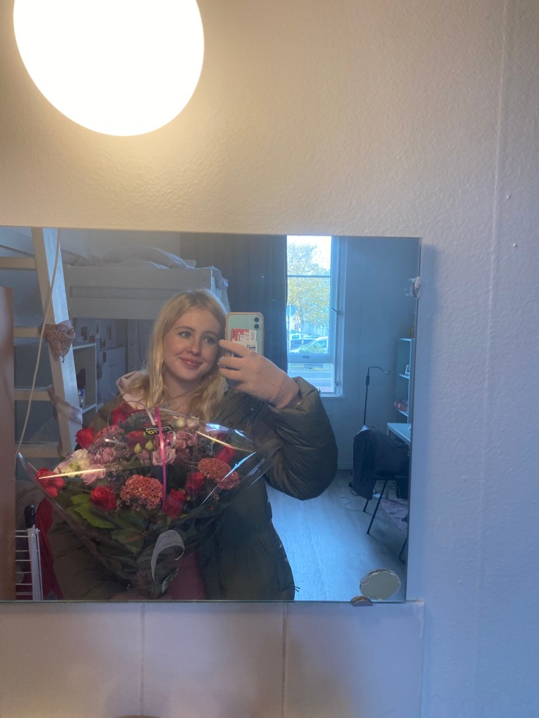 Exams week wasn’t all gloomy, though, because in the middle of it I had my 21st birthday! November 9th greeted me with the greatest gift I could wish for in the Netherlands: sunshine! Three of my roommates and I took the train to Amsterdam, which seemed much more magical than when I saw it in September with Emma. The streets were adorned with Christmas lights, and a light drizzle fostered a perfect ambiance for the day. The girls and I stumbled upon a gorgeous bar/restaurant with funky wallpaper and tasteful flowers hanging from the ceiling. I ordered a fancy cocktail that I guzzled too quickly, forgetting that this “slurpie” had more than just sugar in it. If you told ten-year-old Katia that she would be celebrating her 21st in Europe, wearing pink overalls, and drinking a hot pink cocktail, she would be over the moon. A giant bouquet of pink roses arrived for me in the morning, and I joked that it was from my “Dutch boyfriend” (a girl can dream!). After hours of exploring Amsterdam, window shopping, and chowing on Tony’s chocolate, I FaceTimed my friends in California and called it a day. To be honest, I was apprehensive having to celebrate my birthday away from home, especially because many of my friends here were out traveling during their “reflection week” from uni. I was humbly surprised at how special everyone made me feel, and truthfully it could not have been a better day. I will remember it forever.
